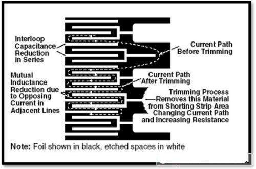 这些功能有助于提高系统稳定性和可靠性,精度、稳定性和速度之间不必相互妥协。为获得精确电阻值,大金属箔晶片电阻可通过有选择地消除内在“短板”进行修整。当需要按已知增量加大电阻时,可以切割标记的区域 (图2),逐步少量提高电阻。