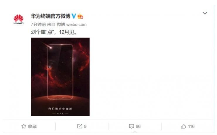 服务时间 :09:00-19:0011月26日消息,华为终端官方微博发布了一条消息,一张海报图下面写着“自拍极点全面屏”七个大字,并配文成12月见。毫无疑问,这是华为新机的一次预热,也证实了华为即将有一款新机在12月与大家见面。从内容不多的预热海报内容来看,此次的新机将搭载全新技术“极点全面屏”。