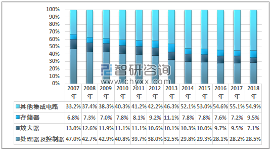 2007-2018年我国集成电路进口产品金额结构变动趋势