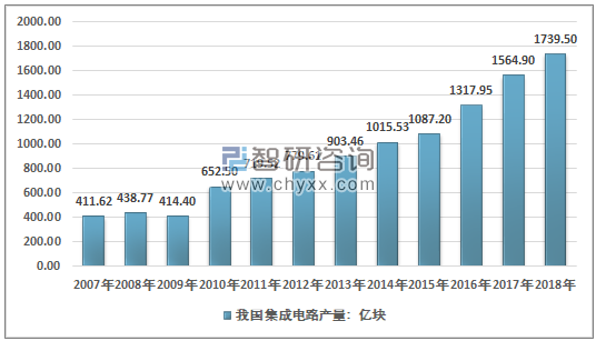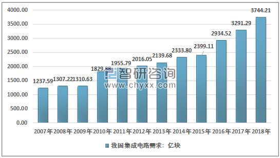 2007-2018年我国集成电路需求量走势图