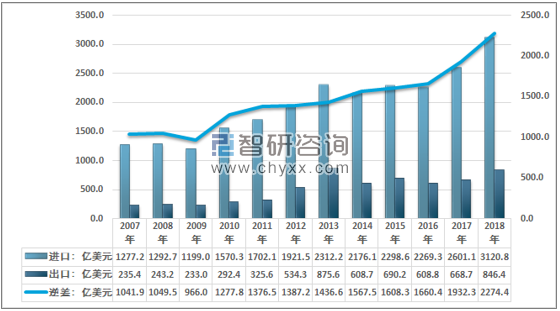 2018年我国集成电路贸易逆差达到2274.4亿美元