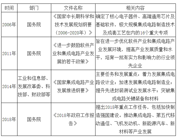 近年来我国集成电路产业主要政策一览