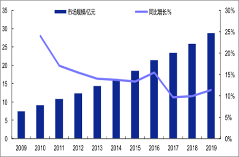 2009-2019年中国军用 MLCC市场规模发展趋势与预测