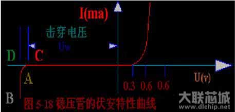 3、稳压二极管的伏安特性曲线的正向特性和普通二极管差不多,方向特性是在反向电压低于反向击穿电压时,反向电阻很大,反向漏电流极小。