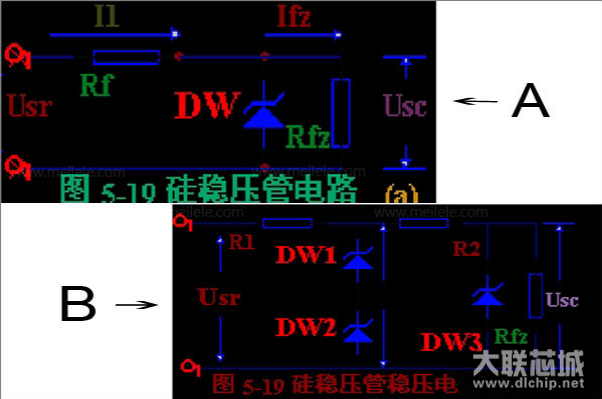 温度的变化将使VZ改变,在稳压管中,当|VZ|》7V时,Vz具有正温度系数,反向击穿是雪崩击穿。当|Vz|<4V时,VZ具有负温度系数,反向击穿是齐纳击穿。