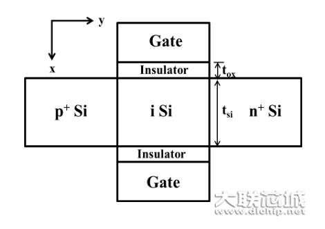 下图是一个双栅结构的 si tfet示意图。