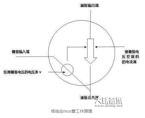 无论N型或者P型MOS管,其工作原理本质是一样的。MOS管是由加在输入端栅极的电压来控制输出端漏极的电流。MOS管是压控器件它通过加在栅极上的电压控制器件的特性,不会发生像三极管做开关时的因基极电流引起的电荷存储效应,因此在开关应用中,MOS管的开关速度应该比三极管快。其主要原理如图: