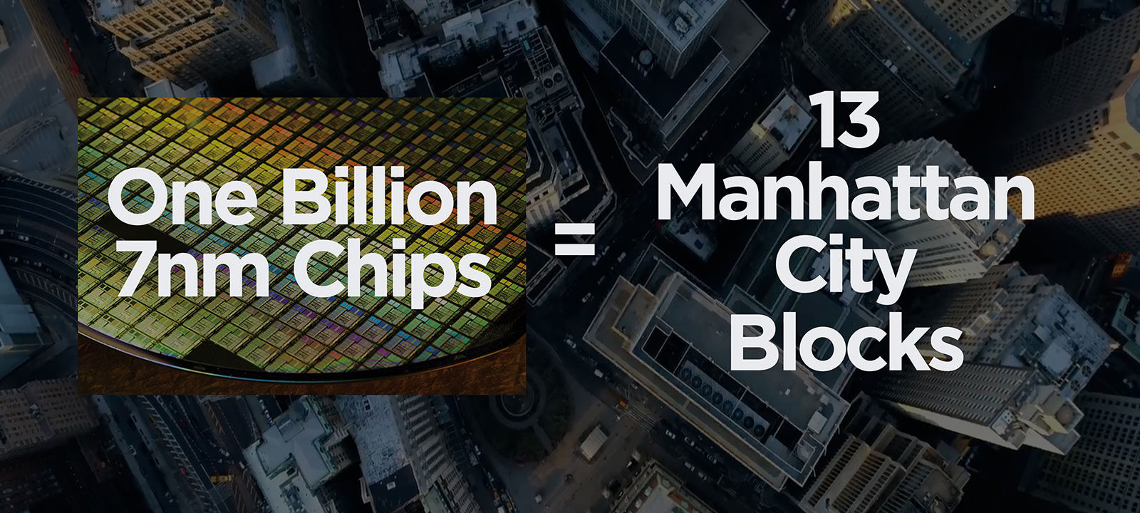 这项技术于2018年4月进入量产阶段,这是一项了不起的成就。从那时起,我们已经为数十家客户的100多种产品制造了7nm芯片。它的硅足够覆盖超过13个曼哈顿城市街区,每个芯片拥有超过10亿个晶体管,这是真正的Exa级,即超过1百亿亿个7nm晶体管。