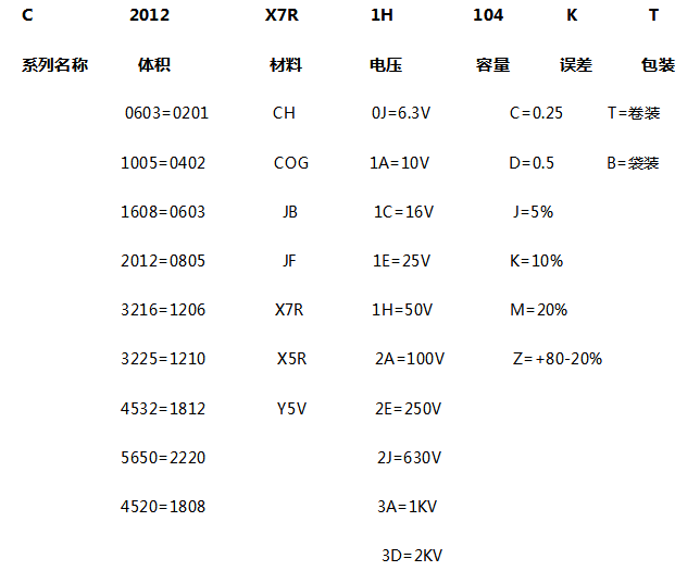 以下是TDK贴片电容型号及参数识别,积层贴片陶瓷片式电容器