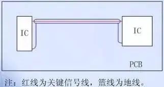 2、保护与分流线路:设置分流和保护线路是对关键信号,比如对在一个充满噪声的环境中的系统时钟信号进行隔离和保护的非常有效的方法。在图 21 中,PCB 内的并联或者保护线路是沿着关键信号的线路布放。