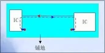 图 5 双层板的关键信号线地投影平面上大面积铺地